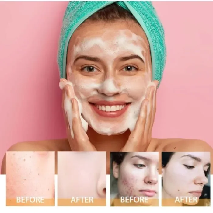 2. Nettoyage profond sans agresser la peau 🌿 :Sa mousse douce élimine en profondeur les impuretés, poussières, résidus de maquillage et excès de sébum. Enrichi en acides doux, en eau de rose et en agents nettoyants non irritants, il purifie la peau tout en respectant son équilibre naturel. Résultat : un visage parfaitement propre, frais et purifié, sans tiraillements ni sensation de sécheresse. Convient même aux peaux sensibles.